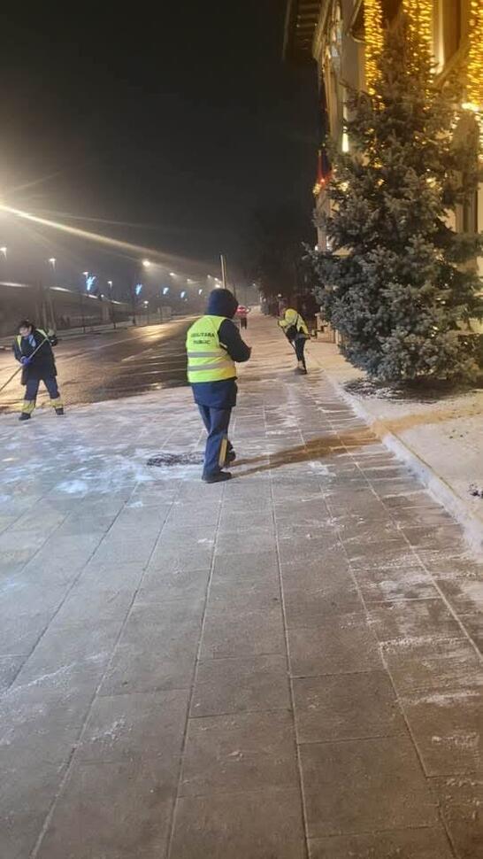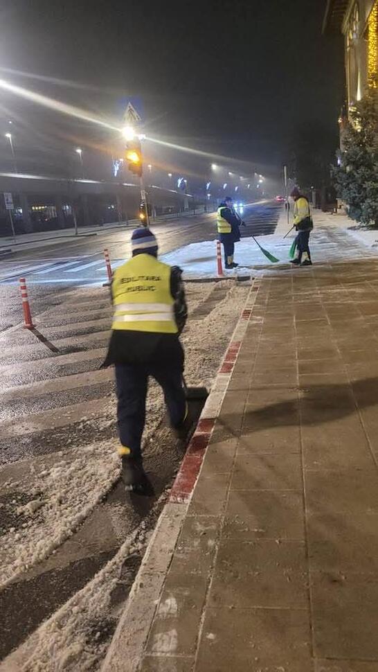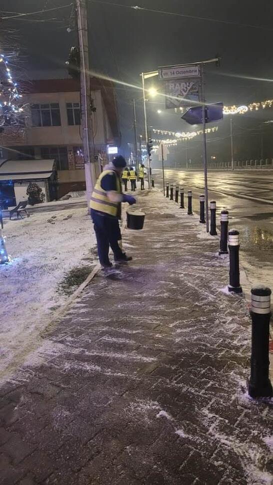 „S-a acționat deja pe bulevarde, poduri, centuri și drumurile principale, urmând ca acțiunile să continue pe străzile din cartiere. Pe trotuare, se va acționa în cursul nopții și până mâine dimineață pentru împrăștierea materialului antiderapant”, a declarat Adrian Dăianu.