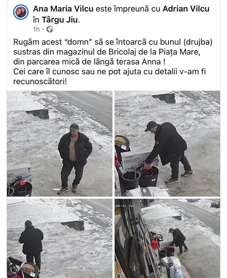 „Rugăm acest “domn” să se întoarcă cu bunul (drujba) sustras din magazinul de Bricolaj de la Piața Mare, din parcarea mică de lângă terasa Anna !