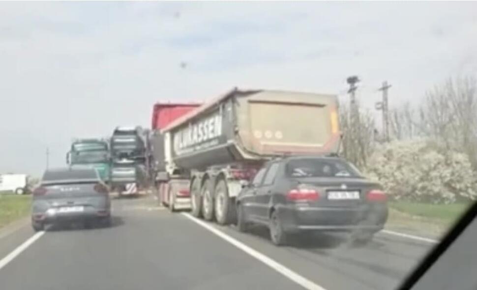 Accidentul implică două TIR-uri și un autoturism, în zona Lugojel, județul Timiș.