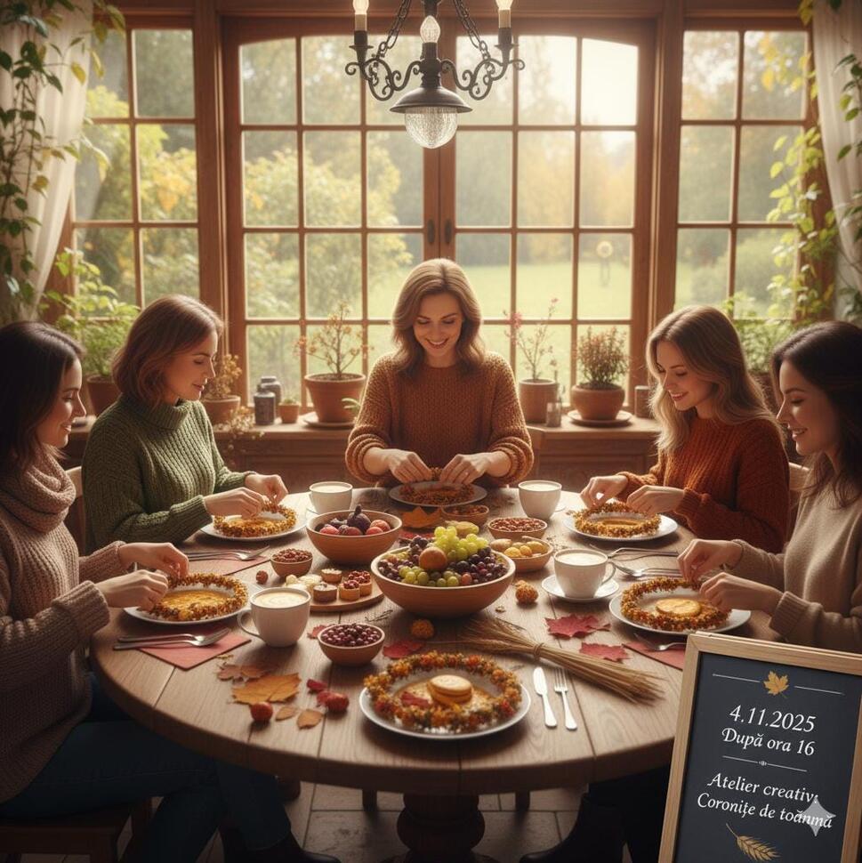 Vă aștept cu drag să petrecem câteva ore frumoase împreună — cu gustări de sezon, povești, voie bună și un mic atelier creativ de coronițe de toamnă, realizate din flori uscate, spice și frunze colorate.