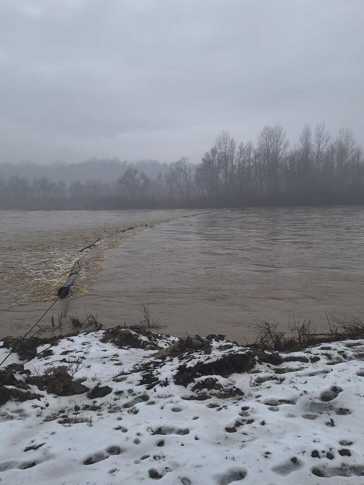 Barajul plutitor de pe râul Jiu, la Rovinari, rupt de viitură