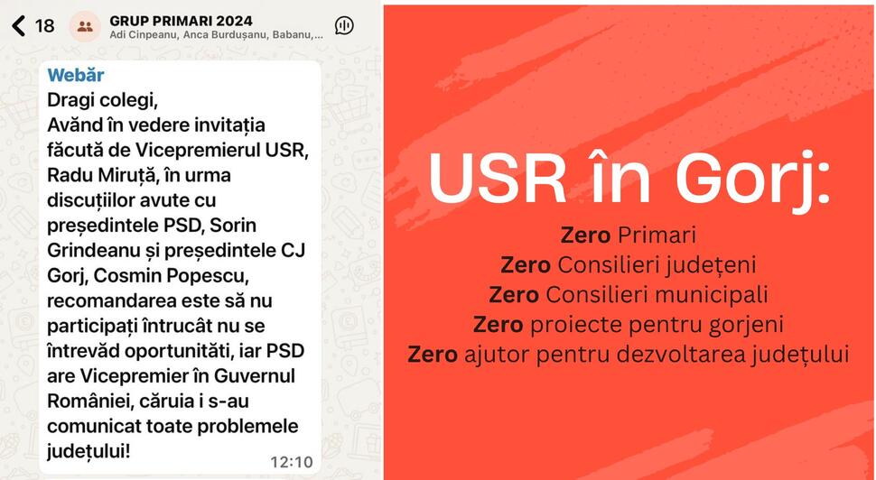 Tensiuni politice în județul Gorj, după ce președintele USR Gorj, deputatul și vicepremierul Radu Miruță, a invitat primarii din județ – indiferent de culoarea politică – la o întâlnire de lucru pentru discutarea problemelor locale.