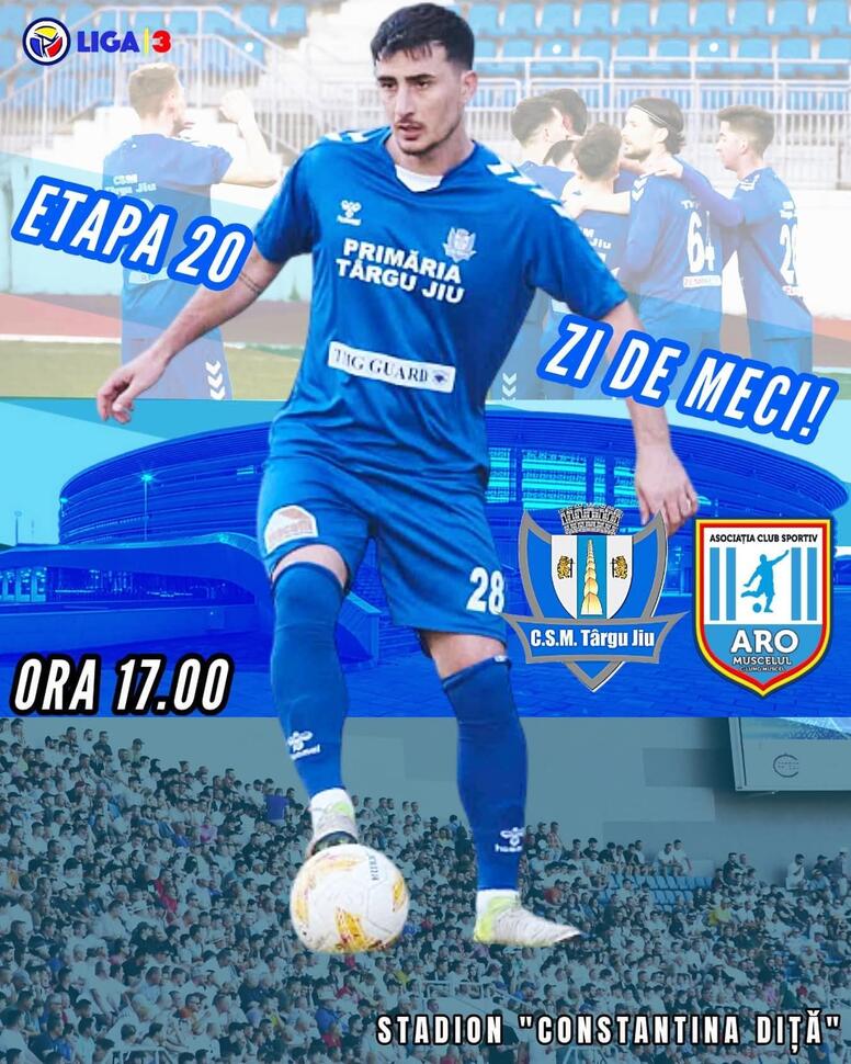 CSM Târgu Jiu va întâlni astăzi formația ARO Muscelul Câmpulung, într-o partidă programată de la ora 17:00, pe Stadionul „Constantina Diță”.