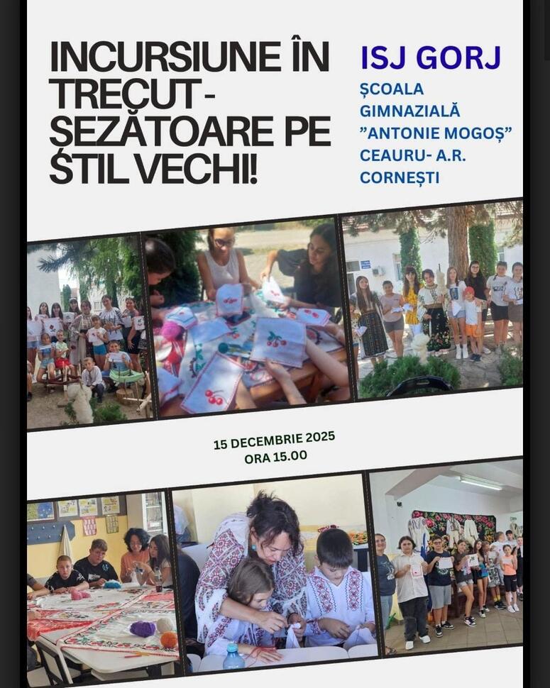 Un proiect județean de amploare, intitulat „Incursiune în trecut – Șezătoare pe stil vechi”, mobilizat de Școala Gimnazială „Antonie Mogoș” Ceauru , în comuna Bălești din județul Gorj, va avea loc astăzi.