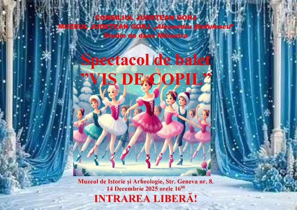 Este vorba despre spectacolul de balet intitulat „VIS DE COPIL”, care se va desfășura pe data de 14 Decembrie 2025, începând cu ora 16:00.