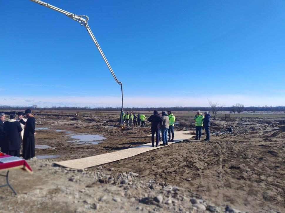 În mesajul transmis comunității, primarul a precizat: „Azi, 18.02.2026, a avut loc, cu binecuvântarea lui Dumnezeu, ceremonia de punere a primei pietre la temelia noii fabrici de cherestea din comună.”