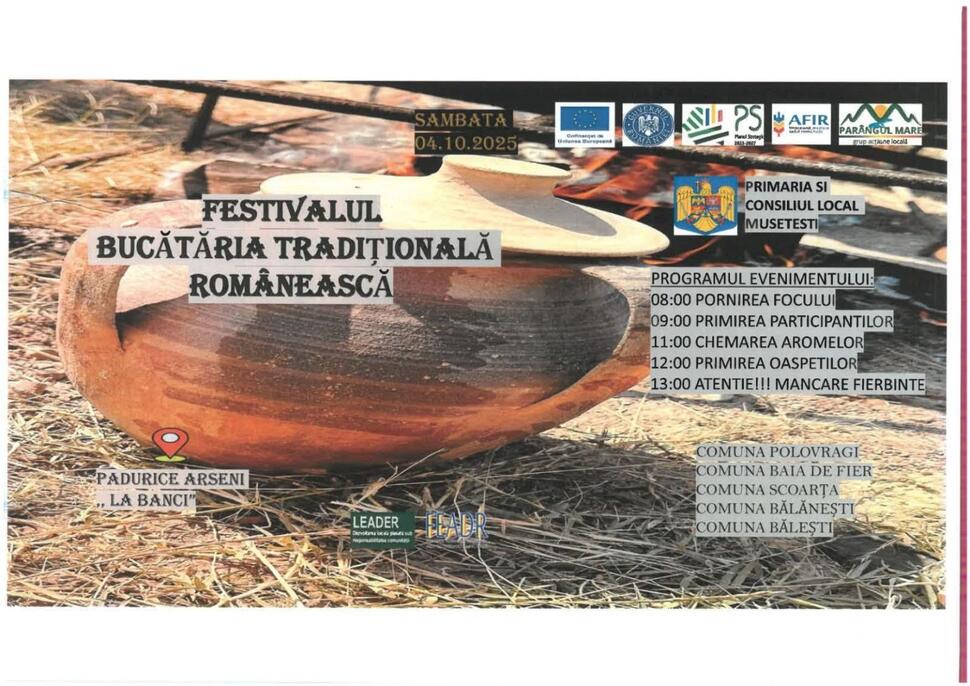 Comuna Mușetești va fi destinația numărul 1 la sfârșitul acestei săptămâni. Acolo va fi organizat un festival culinar menit să promoveze preparatele tradiționale românești. Alături de sătenii din Mușetești, vor găti bucate alese și locuitorii din alte câteva comune din Gorj.