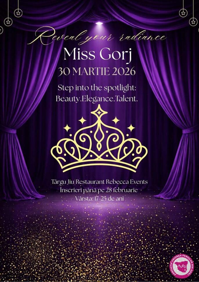 Asociația Uniunea Femeilor din Gorj a dat startul căutărilor pentru Miss Gorj 2026, un eveniment care își propune să descopere tinere ce îmbină frumusețea cu grația și curajul. Concursul se adresează fetelor cu vârsta cuprinsă între 17 și 25 de ani, care dau dovadă de energie pozitivă și eleganță.