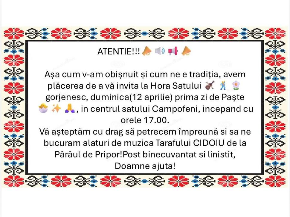 Tocmai de aceea, locuitorii din comuna Arcani sunt invitați să se prindă în marea Horă a Satului, un eveniment de suflet care va avea loc duminică, 12 aprilie, chiar în prima zi de Paște.