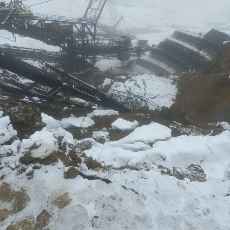 Un incident grav a avut loc astăzi, la ora 8:30, la o subunitate a CE Oltenia, unde o surpare masivă de teren pe o lungime de 70 de metri a îngropat excavatorul 1400-05 până la sistemul de rotire.
