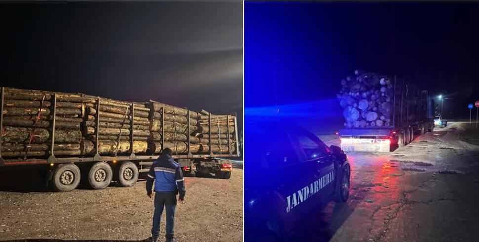 Jandarmii montani au întocmit documente de sesizare sub aspectul săvârșirii infracțiunii prevăzute de art.151, alin (2), lit. c) din Codul Silvic ,,Transportul cu orice mijloace de transport al materialelor lemnoase neînsoţite de avizul de însoţire a materialelor lemnoase sau fără provenienţă legală”.