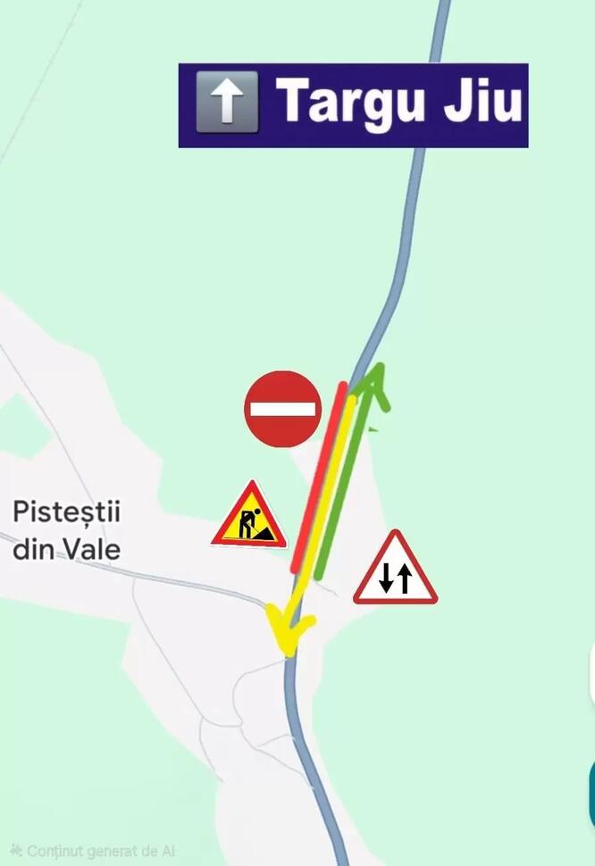 „Din această cauză circulația rutieră se va desfășura în ambele sensuri pe cele două benzi de urcare, spre Târgu-Jiu. Această deviere a traficului va fi semnalizată corespunzător cu balize și piloți de trafic. Vă rugăm să circulați cu prudență și să respectați semnalizarea rutieră temporară” a transmis DRDP Craiova.