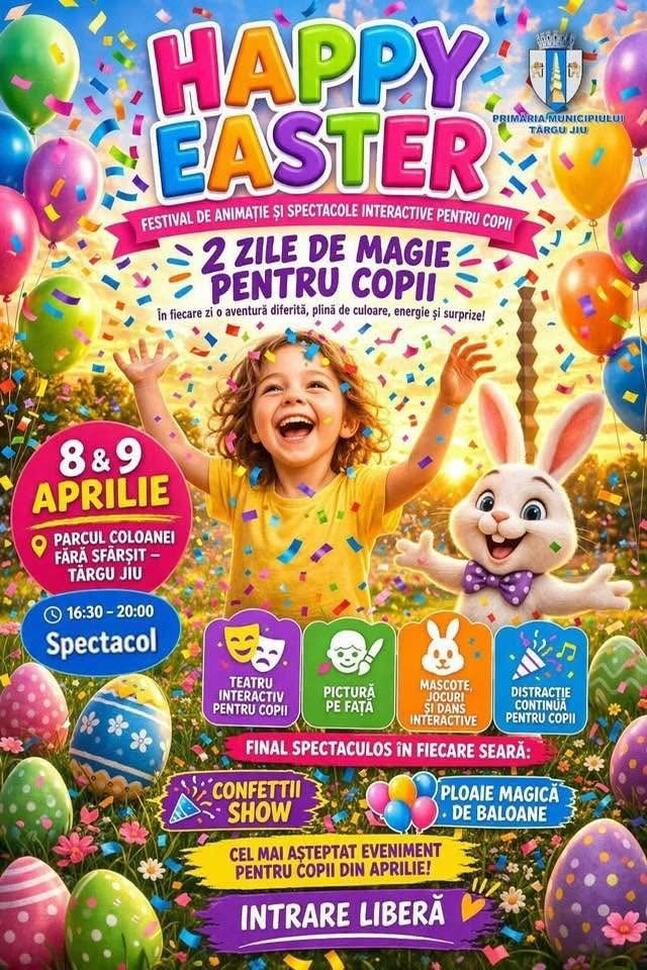 Săptămâna viitoare, municipiul Târgu Jiu se transformă într-un imens teren de joacă, după cum anunță primarul Marcel Romanescu. În zilele de miercuri și joi, respectiv 8 și 9 aprilie, Parcul Coloanei Fără Sfârșit va găzdui un eveniment special dedicat copiilor, promițând două zile pline de magie și activități captivante.