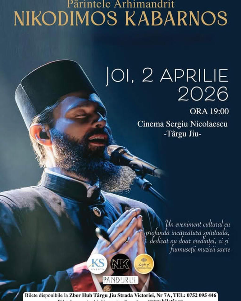 Prin prezența lui Nikodimos Kabarnos, publicul din Târgu Jiu va avea ocazia să asculte un interpret recunoscut la nivel internațional, într-un concert care promite o atmosferă deosebită pentru iubitorii muzicii religioase.