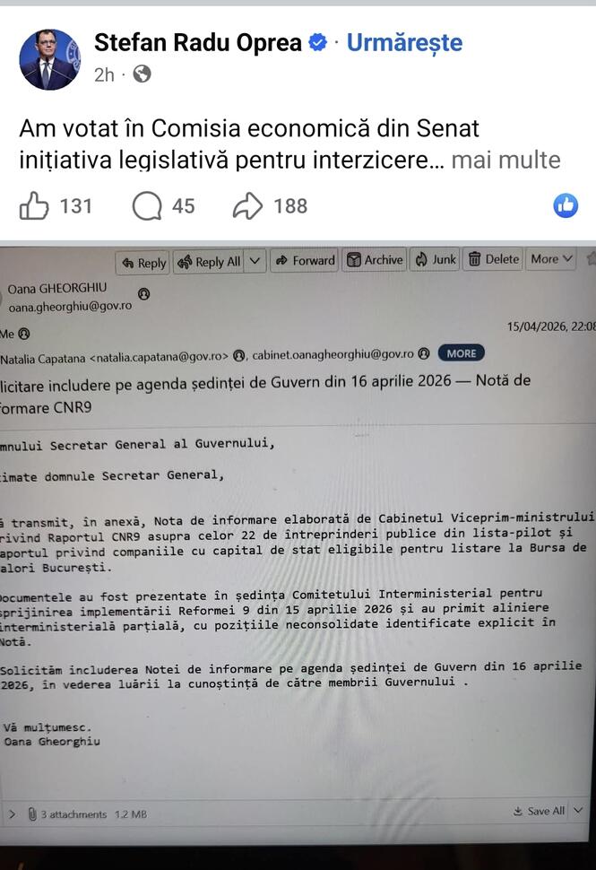 Un argument invocat pentru listarea la bursă este transparența, iar când folosești metode opace, eu am primit emailul cu anexa cu pricina miercuri seară la ora 22:08 (conform poză), iar ședința de guvern a avut loc joi la ora 11:00, este evident că nu mai poți avea încredere că intențiile sunt bune pentru români.