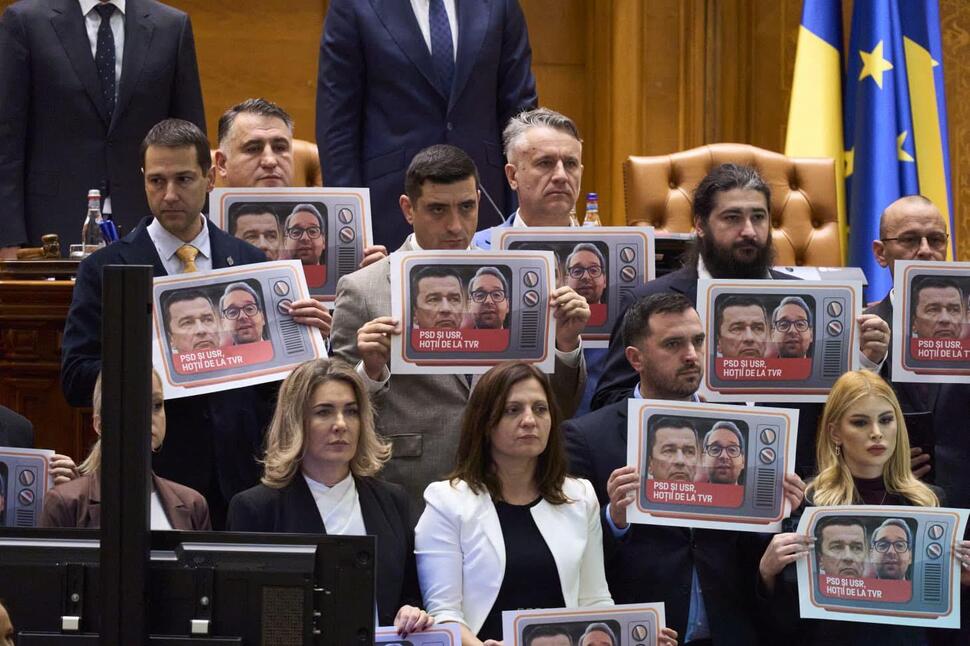 Parlamentarii AUR au părăsit ședința din plenul reunit, în semn de protest față de un alt abuz brutal comis de coaliția PSD-PNL-USR-UDMR: “furtul locurilor care revin Opoziției în consiliile de administrație ale TVR și SRR.”