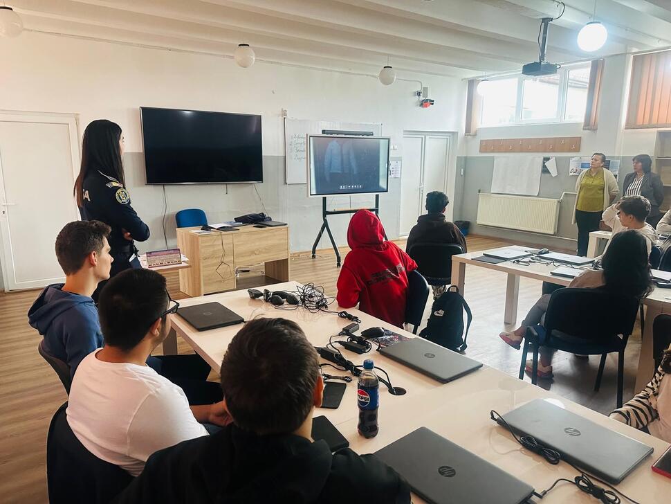 Astăzi, polițiștii Biroului de Analiză și Prevenire a Criminalității au susținut două activități informativ-preventive la Liceul Tehnologic „Ion Mincu” din Târgu-Jiu, adresate elevilor din clasele a IX-a și a X-a.