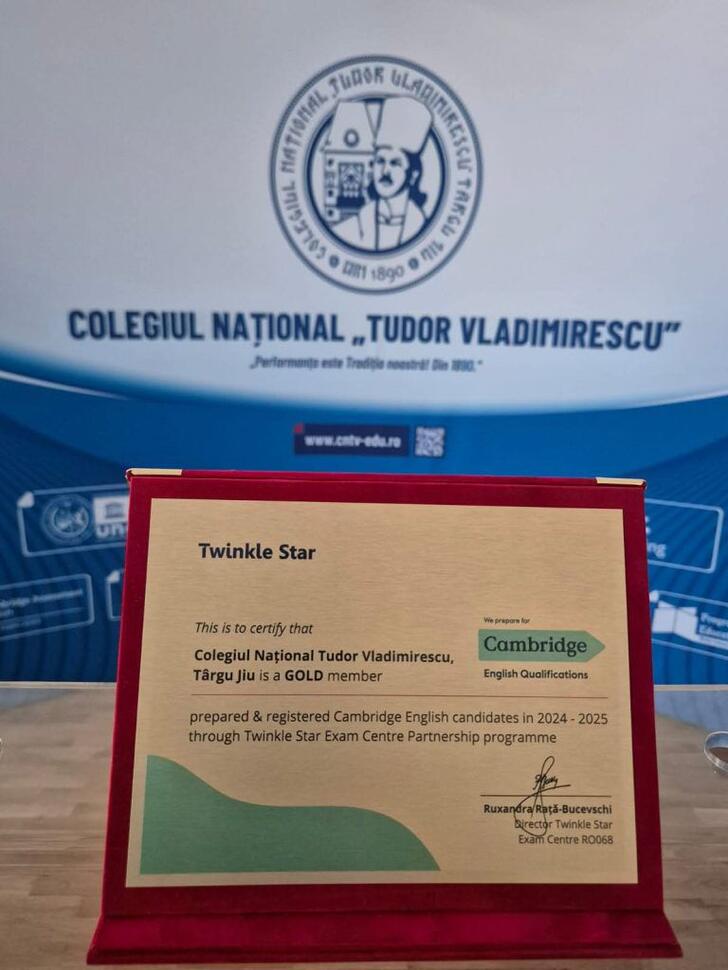 Dincolo de reconfirmarea statutului de centru de pregătire, Colegiul Național „Tudor Vladimirescu” a urcat o treaptă importantă în ierarhia excelenței, fiindu-i acordată titulatura de „GOLD MEMBER”. Această distincție specială vine ca urmare a unui volum impresionant de activitate, reflectând atât numărul mare de elevi implicați în procesul de pregătire, cât și eficiența organizatorică a examenelor Cambridge desfășurate în incinta liceului. Titulatura de membru „Gold” reprezintă cea mai înaltă formă de apreciere pentru parteneriatele educaționale Cambridge, poziționând colegiul din Târgu Jiu pe harta celor mai performante centre de testare lingvistică din România.