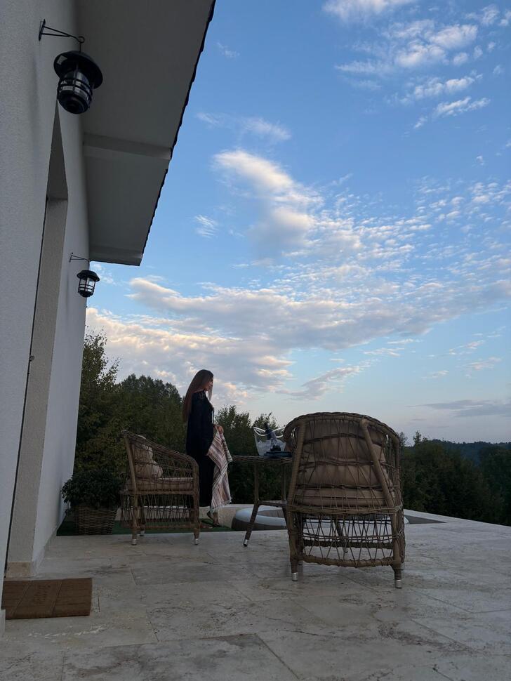 La exterior, o terasă privată, un jacuzzi, o zonă de relaxare, grătarul și un pitfire completează perfect atmosfera.