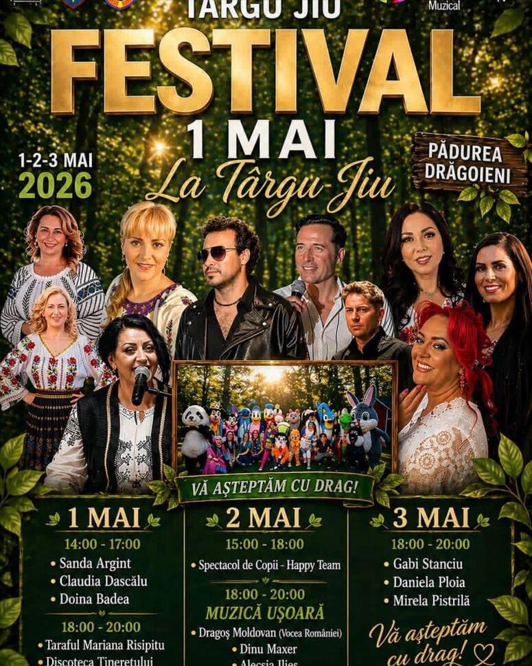 Locuitorii din Târgu Jiu sunt invitați să sărbătorească minivacanța de 1 Mai în natură, într-un cadru festiv organizat în Pădurea Drăgoieni. Evenimentul, intitulat „Târgu Jiu Festival”, se va desfășura pe parcursul a trei zile, între 1 și 3 mai 2026, oferind un program variat care îmbină muzica populară, spectacolele pentru copii și concertele de muzică ușoară.