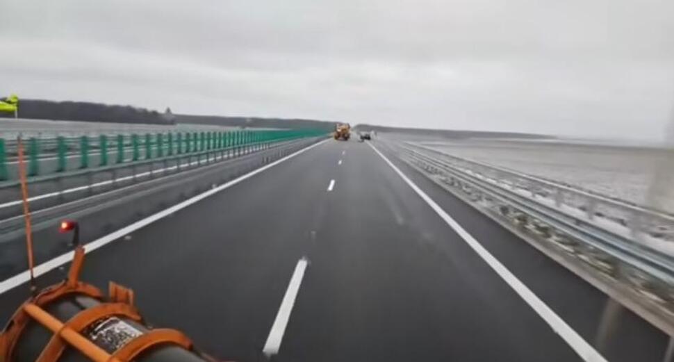 În ciuda avertismentelor repetate, șoferul a decis să depășească utilajele de deszăpezire care acționau cu lamă și material antiderapant, pierzând controlul volanului și avariind grav parapetul de protecție al drumului.