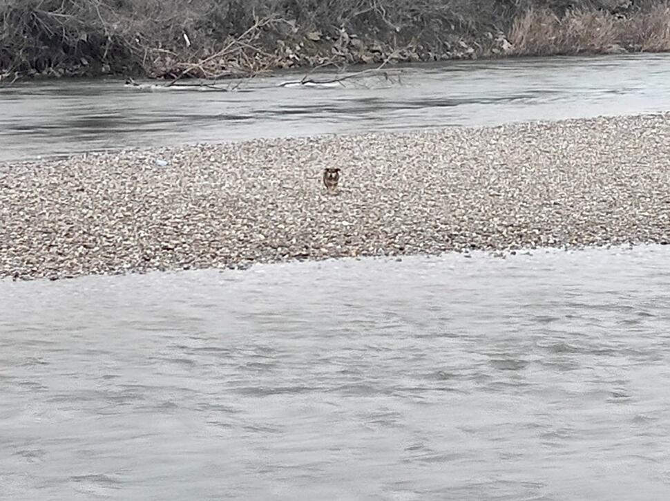 Un câine dispărut de două zile de acasă a fost salvat în urma unei intervenții spectaculoase a pompierilor din Gorj, după ce stăpânul său l-a auzit lătrând de pe o insulă formată în mijlocul râului Jiu.